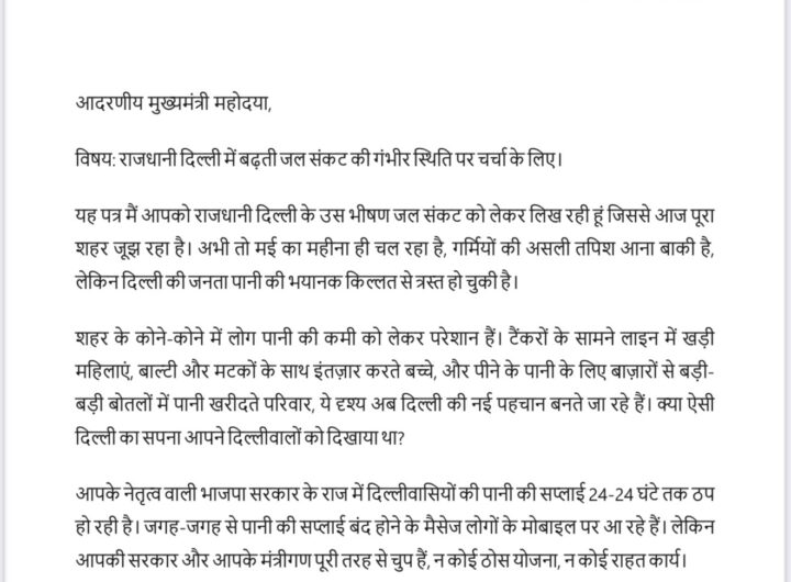 नई दिल्ली। दिल्ली विधानसभा में नेता प्रतिपक्ष और आम आदमी पार्टी (आआपा) की नेता आतिशी ने शनिवार...