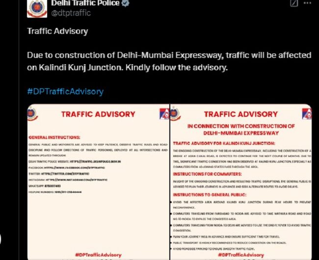नई दिल्ली, 19 दिसंबर । दिल्ली यातायात पुलिस ने आज जारी परामर्श (ट्रैफिक एडवाइजरी) में कहा कि...
