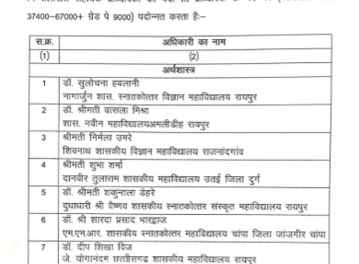 रायपुर 30 मई । छत्तीसगढ़ में उच्च शिक्षा विभाग ने गुरुवार की देर रात 275 से अधिक...