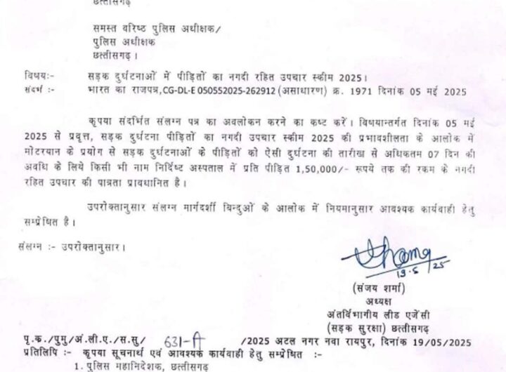 रायपुर, 20 मई। सड़क हादसे के बाद समय पर इलाज नहीं मिलने की वजह से हजारों लोग...