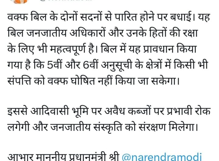 रायपुर 4 अप्रैल | छत्तीसगढ़ के उप मुख्यमंत्री अरुण साव ने लोकसभा और राज्यसभा में वक्फ संशोधन...