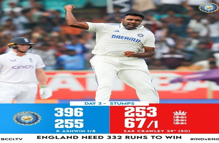 क्रिकेट में, इंग्लैंड आज सुबह विशाखापत्तनम में पांच मैचों की श्रृंखला के दूसरे टेस्ट के चौथे दिन भारत...