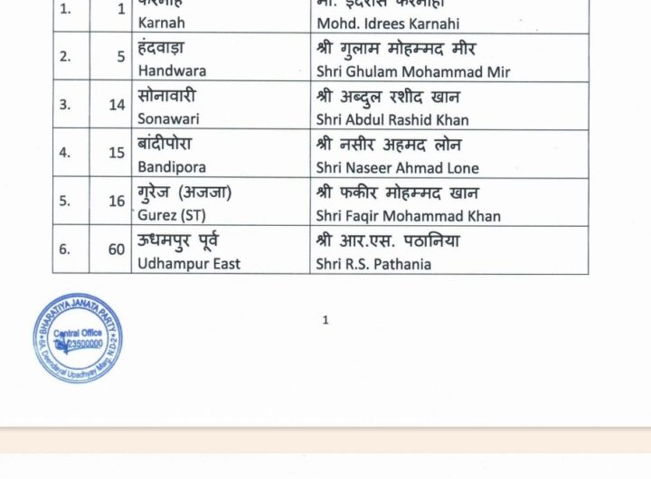 नई दिल्ली, 08 सितंबर । भाजपा ने रविवार को जम्मू-कश्मीर विधानसभा चुनाव के लिए छठी सूची में...