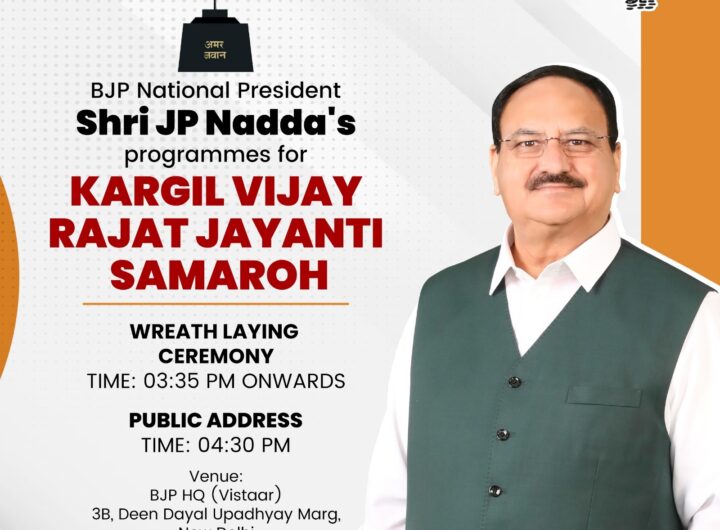नई दिल्ली, 26 जुलाई। भारतीय जनता पार्टी (भाजपा) ने कारगिल विजय दिवस के उपलक्ष्य में आज भारतीय...