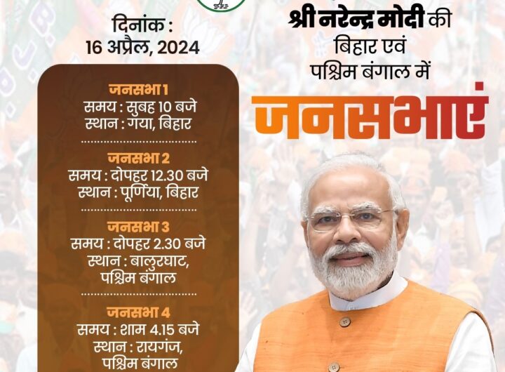 नई दिल्ली, 16 अप्रैल । भारतीय जनता पार्टी (भाजपा) के शीर्ष नेता और प्रधानमंत्री नरेन्द्र मोदी देश...