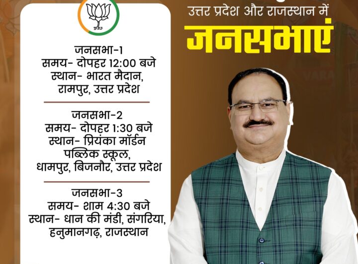 नई दिल्ली, 08 अप्रैल । भारतीय जनता पार्टी (भाजपा) के राष्ट्रीय अध्यक्ष जेपी नड्डा आज उत्तर प्रदेश...