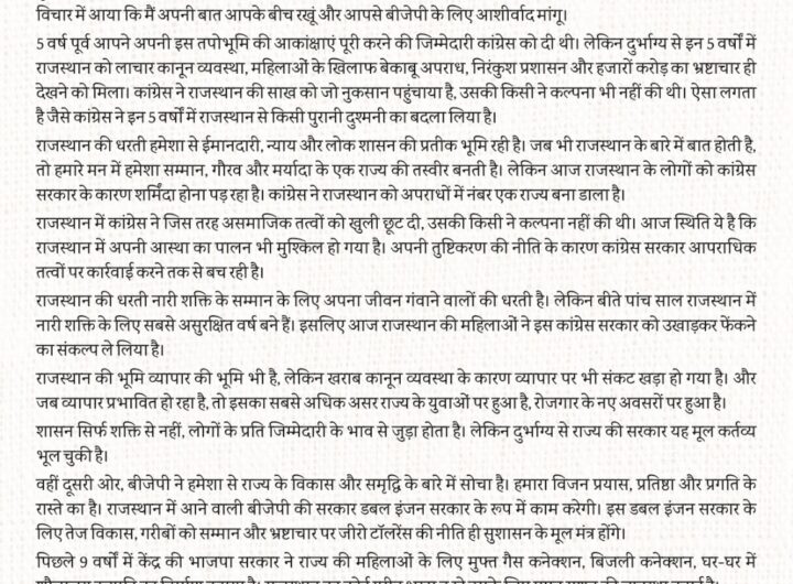 जयपुर, 22 नवंबर । राजस्थान विधानसभा चुनाव से तीन दिन पहले प्रधानमंत्री नरेन्द्र मोदी ने बुधवार को...