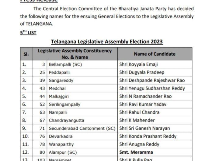 नई दिल्ली, 10 नवंबर । तेलंगाना विधानसभा चुनाव के लिए भारतीय जनता पार्टी ने शुक्रवार को अपने...