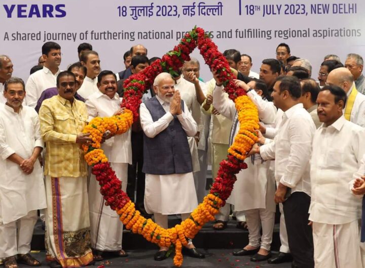 नई दिल्ली, 19 जुलाई। राष्ट्रीय राजधानी दिल्ली के अशोक होटल में मंगलवार को हुई एनडीए की बैठक...