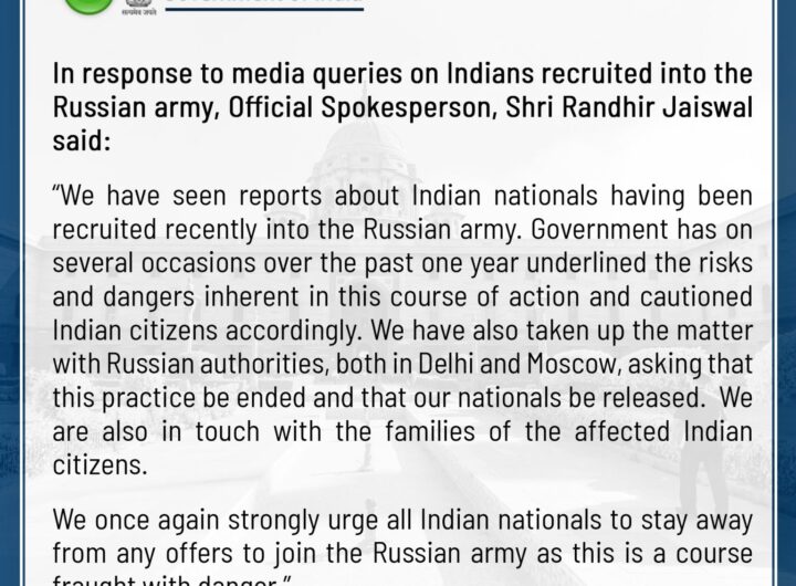 सरकार ने आज सभी भारतीय नागरिकों से रूसी सेना में शामिल होने के किसी भी प्रस्ताव से...