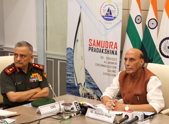राजनाथ सिंह ने भारत के पहले अखिल महिला त्रि-सेवा जलयात्रा अभियान, आईएएसवी त्रिवेणी को हरी झंडी दिखाई