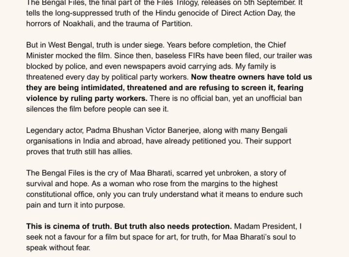 विवेक अग्निहोत्री और पल्लवी जोशी की विवादों में फंसी फिल्म `द बंगाल फाइल्स’ 5 सितंबर यानी कल...