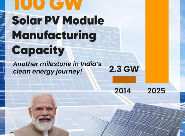 भारत ने सौर पी.वी. मॉड्यूल विनिर्माण क्षमता में 100 गीगावाट की ऐतिहासिक उपलब्धि हासिल की है, जिसे...