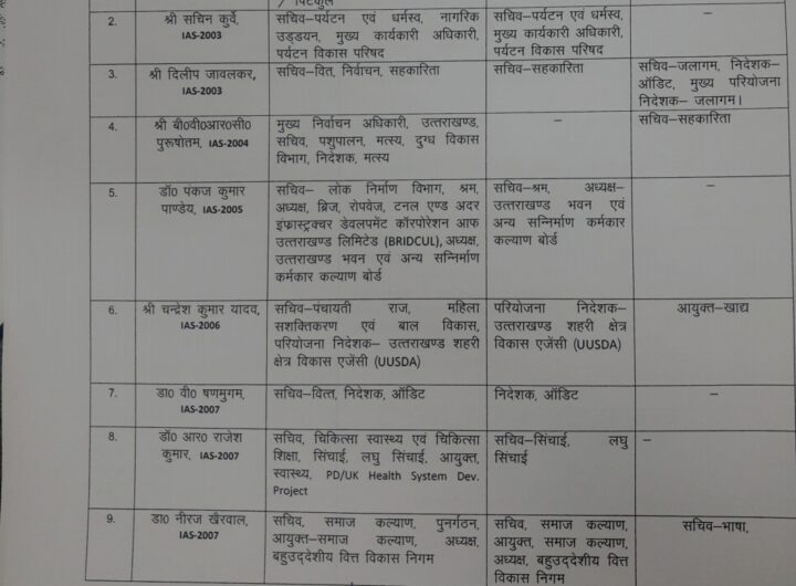 देहरादून, 20 जून । उत्तराखंड शासन ने भारतीय प्रशासनिक सेवा (आइएएस) के 32 और 24 पीसीएस के...