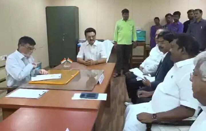 मुख्यमंत्री एमके स्टालिन की उपस्थिति में डीएमके उम्मीदवारों ने तमिलनाडु विधानसभा कार्यालय में राज्यसभा चुनाव के लिए...