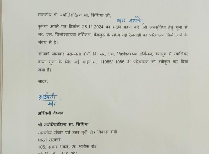 मध्य प्रदेश के गुना रेलवे स्टेशन से बेंगलुरु के बीच अब सीधी ट्रेन सेवा शुरू होगी। रेल...