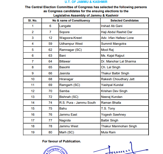 नई दिल्ली, 9 सितंबर। जम्मू एवं कश्मीर विधानसभा चुनाव के लिए कांग्रेस ने उम्मीदवारों की तीसरी सूची...