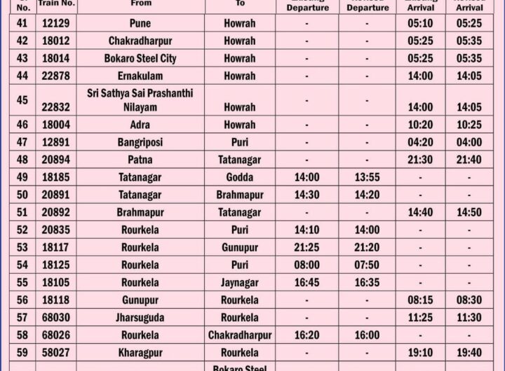 कोलकाता, 31 दिसंबर । दक्षिण पूर्व रेलवे (एसईआर) ने बुधवार दोपहर अपनी नई समय सारणी-2026 जारी कर...
