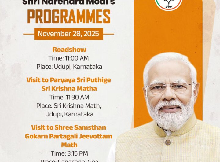 उडुपी, 28 नवंबर। प्रधानमंत्री नरेन्द्रे मोदी आज कर्नाटक के उडुपी का दौरा करेंगे। वह उडुपी में श्रीकृष्ण...