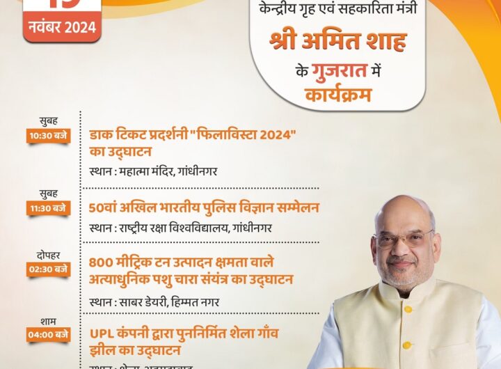 नई दिल्ली, 19 नवंबर। केंद्रीय गृह एवं सहकारिता मंत्री अमित शाह आज गुजरात के गांधीनगर और अहमदाबाद...
