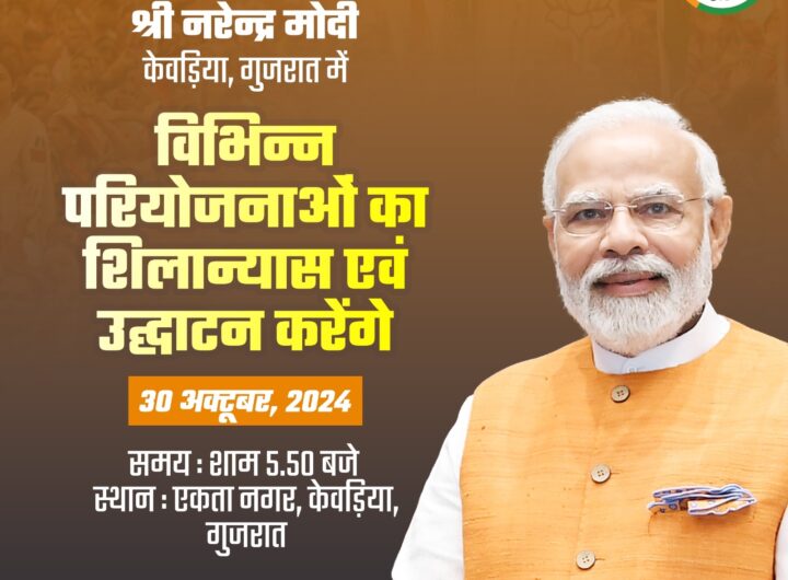 नई दिल्ली, 30 अक्टूबर । प्रधानमंत्री नरेन्द्र मोदी आज गुजरात के दौरे पर पहुंच रहे हैं। वह...