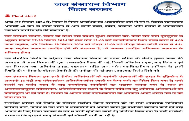 पटना, 28 सितंबर । बिहार में बीते दो दिन से अधिकतर जिलों में भारी से मध्यम दर्जे...