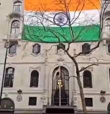 लंदन, 23 मार्च। खालिस्तानी समर्थकों के प्रदर्शन के बाद लंदन में भारतीय उच्चायोग ने उन्हें करारा जवाब देते हुए विशाल तिरंगा लगाया।