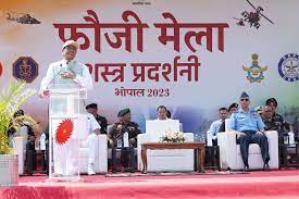 मुख्यमंत्री चौहान भोपाल में आयोजित फौजी मेले के शुभारम्भ कार्यक्रम को संबोधित कर रहे थे। यहां पुलिस मुख्यालय के पास एमवीएम महाविद्यालय मैदान में फौजी मेले का आयोजन किया गया है। मुख्यमंत्री चौहान ने बुधवार सुबह इसका शुभारम्भ किया। इस मौके पर बड़ी संख्या में सेना के वरिष्ठ अधिकारी मौजूद रहे। इस मेले में भारतीय सेना द्वारा युद्ध के दौरान उपयोग किए जाने वाले हथियार और वाहनों को आमजन पास से देख सकेंगे।
