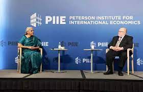 पीआईआईई के अध्यक्ष एडम पोसेन ने पश्चिमी मीडिया में भारत में अल्पसंख्यकों के हिंसा का शिकार होने जैसे मसले उठाए जाने पर सवाल पूछा तो निर्मला सीतारमण ने इसे खारिज कर दिया। उन्होंने कहा कि भारत में दुनिया की दूसरी सबसे बड़ी मुस्लिम आबादी रहती है और यह आबादी संख्या में अब भी बढ़ रही है। उन्होंने सवाल उठाया कि क्या यह भारत के बारे में इस मायने में कहना सही होगा जब मुस्लिम आबादी 1947 की तुलना में बढ़ रही है? वहीं पाकिस्तान में अल्पसंख्यकों की हालत बद से बदतर होती जा रही है और उनकी संख्या दिन पर दिन घटती जा रही है। यहां तक कि कुछ मुस्लिम वर्गों की संख्या भी पाकिस्तान में कम हुई है।