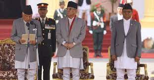 काठमांडू, 04 मई। नेपाल में तीन नवनियुक्त मंत्रियों ने गुरुवार को शपथ ली। नेपाली कांग्रेस की ओर से प्रचंड के नेतृत्व वाली सरकार में शामिल नए मंत्रियों को राष्ट्रपति रामचंद्र पौडेल ने शपथ दिलाई।