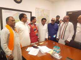 भोपाल, 6 मई। मध्य प्रदेश के पूर्व मुख्यमंत्री और भाजपा के संस्थापक सदस्य रहे स्वर्गीय कैलाश जोशी के बेटे और पूर्व मंत्री दीपक जोशी ने भारतीय जनता पार्टी का दामन छोड़ कांग्रेस का हाथ थाम लिया है। वह शनिवार को भोपाल में 74 बंगले स्थित सरकारी आवास बी-30 से अपने पिता कैलाश जोशी की तस्वीर साथ लेकर प्रदेश कांग्रेस कार्यालय (पीसीसी) पहुंचे और पूर्व मुख्यमंत्री एवं प्रदेश कांग्रेस अध्यक्ष कमलनाथ की मौजूदगी में कांग्रेस की सदस्यता ग्रहण की। दीपक जोशी के साथ शनिवार को ही दतिया जिले से विधायक रहे भाजपा के वरिष्ठ नेता राधेलाल बघेल भी कांग्रेस में शामिल हो गए। प्रदेश कांग्रेस अध्यक्ष कमलनाथ ने बघेल को भी कांग्रेस पार्टी की सदस्यता दिलाई।