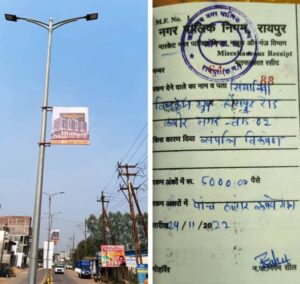 सिंघानिया बिल्डकॉन का विज्ञापन स्ट्रीट पोल पर लगे होने की शिकायत नगर निगम कमिश्नर मयंक चतुर्वेदी के पास पहुंची थी। उन्होंने इसे गंभीरता से लेते हुए तत्काल कार्यवाही के निर्देश निगम के जोन क्रमांक 8 को दिए। जोन 8 के कमिश्नर अरुण ध्रुव, कार्यपालन अभियन्ता संजय शर्मा एवं नगर निवेश उप अभियन्ता सुश्री रुचिका मिश्रा ने स्वयं स्थल पर पहुंचकर उस विज्ञापन बोर्ड को उतरवाया। कबीरनगर क्षेत्र में स्थित सिंघानिया बिल्डकॉन ग्रुप प्रबंधन पर सम्पति विरुपण की कार्यवाही करते हुए 5 हजार रूपये का जुर्माना ठोका गया।