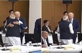 टोक्यो, 20 मई। जी-7 शिखर सम्मेलन में भाग लेने हिरोशिमा पहुंचे भारतीय प्रधानमंत्री नरेन्द्र मोदी और अमेरिकी राष्ट्रपति जो बाइडन की मुलाकात गर्मजोशी से भरी रही। जो बाइडन स्वयं मोदी के पास आए और फिर दोनों नेता गले मिले।