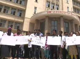 मुंबई, 01 जून । जेजे अस्पताल में 750 रेजिडेंट डॉक्टरों ने गुरुवार सुबह से अनिश्चितकालीन हड़ताल शुरू कर दी है। इसका असर यहां स्वास्थ्य सेवाओं पर पड़ रहा है, जिससे मरीज बेहाल हैं। दूसरी ओर, अस्पताल की प्रमुख डॉ. पल्लवी सापले ने कहा कि स्वास्थ्य सेवाओं पर कोई असर नहीं पड़ा है। हड़ताली डॉक्टरों की नाराजगी खत्म करने का प्रयास किया जा रहा है।