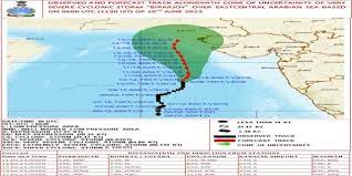 आईएमडी के अनुसार चक्रवाती तूफान बिपरजोय शनिवार को 11.30 बजे तक अरब सागर में 16.8 डिग्री उत्तरी अक्षांश और 67.4 डिग्री पूर्वी देशांतर के पास, गोवा से लगभग 700 किमी पश्चिम उत्तर -पश्चिम , मुंबई के 620 किमी पश्चिम दक्षिण- पश्चिम , पोरबंदर के 590 किमी और कराची से 900 किमी दक्षिण पर केंद्रित है। बिपरजोय के अगले 24 घंटों के दौरान और तेज होने की आशंका है।