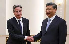 अमेरिका के विदेश मंत्री एंटनी ब्लिंकन इस समय चीन के दौरे पर हैं। इस दौरान ब्लिंकन और जिनपिंग की मुलाकात की प्रतीक्षा की जा रही थी। सोमवार को यह मुलाकात हुई। जिनपिंग ने गर्मजोशी से ब्लिंकन से मुलाकात की। ‘ग्रेट हॉल ऑफ द पीपल’ में हुई इस बैठक से मात्र एक घंटे पहले अमेरिकी विदेश मंत्रालय के एक अधिकारी ने इस संबंध में घोषणा की। बैठक में अमेरिका और चीन के रिश्तों में सुधार पर चर्चा हुई। अमेरिका के राष्ट्रपति जो बाइडन के पदभार ग्रहण करने के बाद से ब्लिंकन चीन की यात्रा करने वाले सर्वोच्च स्तर के पहले अमेरिकी अधिकारी हैं। वह पिछले पांच वर्षों में बीजिंग की यात्रा करने वाले पहले अमेरिकी विदेश मंत्री हैं।