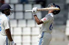जायसवाल ने पहले दिन अपनी छाप छोड़ने में अपना समय लिया, लेकिन जब वह आगे बढ़े तो शानदार लय में दिखे। उन्होंने बैकवर्ड प्वाइंट पर शानदार चौका लगाकर उपलब्धि हासिल की।