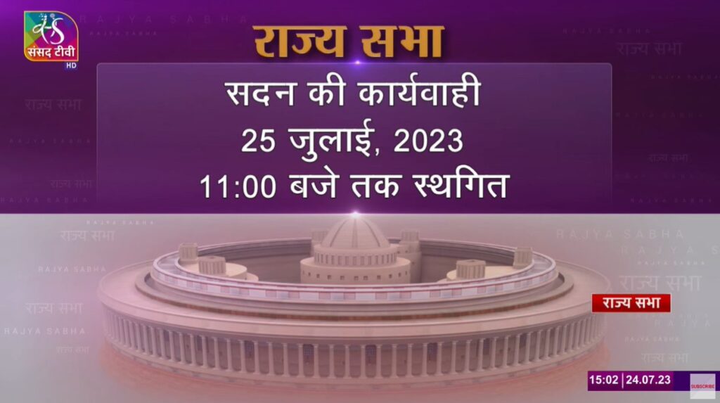 नई दिल्ली, 24 जुलाई । राज्यसभा में सोमवार को भी मणिपुर मुद्दे पर विपक्ष के हंगामे के चलते व्यवधान रहा और सदन की कार्यवाही बार-बार स्थगित हुई। इसी बीच आप सांसद संजय सिंह को अनुचित व्यवहार के चलते सदन से निलंबित कर दिया गया। हालांकि निलंबन के बावजूद संजय सिंह सदन में मौजूद रहे, जिसके बाद दो बार सदन की कार्यवाही स्थगित हुई।