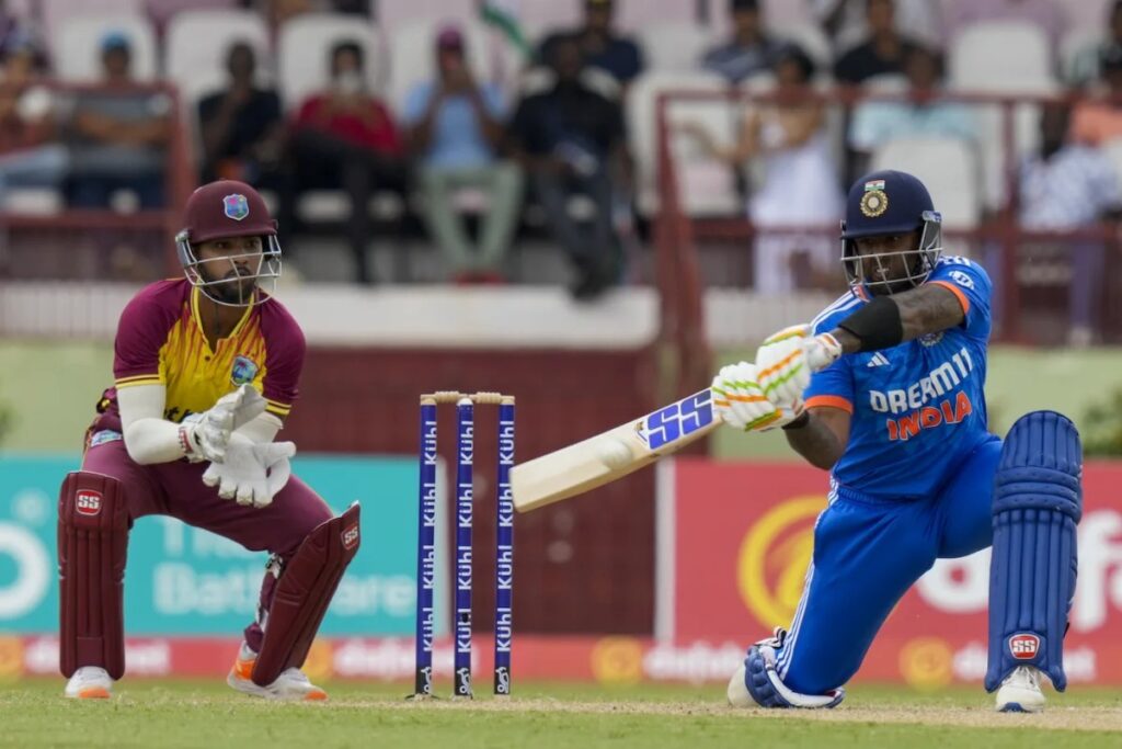 वेस्टइंडीज से मिले 160 रन के लक्ष्य का पीछा करते हुए भारतीय टीम की शुरुआत एक बार फिर खराब रही। सलामी बल्लेबाज यशस्वी जायसवाल एक रन और शुभमन गिल 6 रन बनाकर जल्दी पवेलियन लौट गए। हालांकि इसके बाद सूर्यकुमार यादव और तिलक वर्मा ने जबरदस्त साझेदारी कर टीम की जोरदार वापसी कराई। दोनों के बीच तीसरे विकेट लिए 87 रन की साझेदारी हुई। पारी के 13वें ओवर में सूर्या 83 रन बनाकर आउट हुए। उसके बाद कप्तान हार्दिक पटेल और तिलक ने मिलकर टीम को जीत दिला दी। तिलक वर्मा 49 रन बनाकर तथा हार्दिक 20 रन बनाकर नाबाद रहे। वेस्टइंडीज के लिए अल्जारी जोसेफ ने दो विकेट और ओबेड मैकॉ ने एक विकेट लिया।