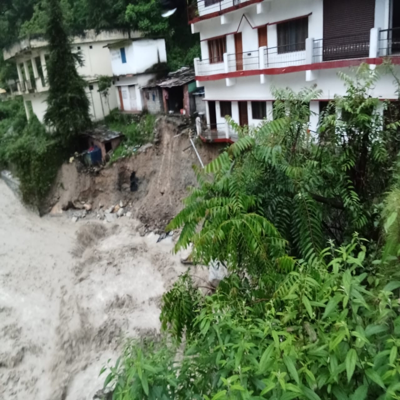 जोशीमठ, 14 जुलाई। जोशीमठ और आसपास के क्षेत्र में मूसलाधार बरसात के बीच रात को गरुड़ गंगा में भी बादल फटने से भारी तबाही हुई है। गरुड़ गंगा लॉज नदी के किनारे दो मकान नदी में बह गए। इस प्राकृतिक आपदा से पीपलकोटी से मायापुर तक कोहराम मच गया।