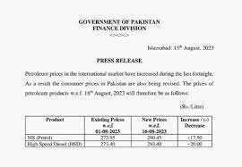 प्रमुख समाचार पत्र डॉन के अनुसार वित्त मंत्रालय ने सोमवार को ही शपथ लेने वाले कार्यवाहक प्रधानमंत्री अनवारुल हक काकर की मंजूरी के बाद मंगलवार देर रात संशोधित कीमतों की घोषणा की। वित्त प्रभाग के मुताबिक दो प्रमुख ईंधन की कीमतें इसलिए बढ़ाई गई क्योंकि पिछले पखवाड़े के दौरान अंतरराष्ट्रीय बाजार में पेट्रोलियम की कीमतें बढ़ी थीं।