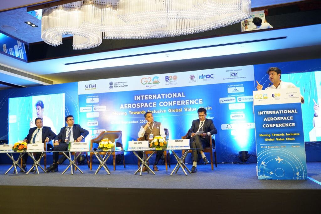 ग्वालियर, 01 सितंबर । केन्द्रीय नागरिक उड्डयन मंत्री ज्योतिरादित्य सिंधिया ने शुक्रवार को भारतीय उद्योग परिसंघ (सीआईआई) द्वारा नागर विमानन मंत्रालय की सहभागिता में विमानन उद्योग की संभावना एवं निवेश प्रोत्साहन के उद्देश्य से ग्वालियर में आयोजित दो दिवसीय बी-20 इंटरनेशनल एयरोस्पेस कांफ्रेंस का शुभारम्भ किया। इस अवसर पर नागर विमानन मंत्रालय के सचिव चंचल कुमार मौजूद रहे।