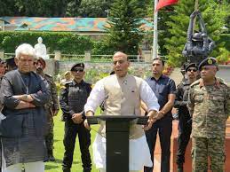 जम्मू, 12 सितंबर। केंद्रीय रक्षा मंत्री राजनाथ सिंह मंगलवार दोपहर अपने एक दिवसीय दौरे पर जम्मू पहुंच गए। जम्मू हवाई अड्डे पर केंद्र शासित प्रदेश के उपराज्यपाल मनोज सिन्हा ने उनका स्वागत किया। जम्मू से रक्षा मंत्री सीधे सांबा के लिए रवाना हो गए, जहां पर उन्हें सांबा जिले के देवक पुल सहित 90 परियोजनाओं का उद्घाटन करना है।