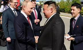 प्योंग्यांग/टोक्यो/मॉस्को, 13 सितंबर । उत्तर कोरिया के तानाशाह किम जोंग उन और रूस के राष्ट्रपति व्लादिमिर पुतिन की मुलाकात में दोनों देशों के रिश्तों में मजबूती का संकल्प व्यक्त किया गया है। इस मुलाकात के बीच ही उत्तर कोरिया ने एक बार फिर बैलिस्टिक मिसाइल दागकर सैन्य शक्ति प्रदर्शन किया है।