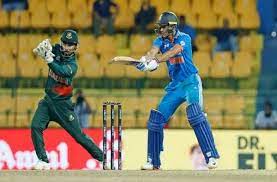कोलंबो के आर प्रेमदासा स्टेडियम में शुक्रवार को भारत और बांग्लादेश के बीच मुकाबला खेला गया। इसमें भारत ने टॉस जीतकर बांग्लादेश को पहले बल्लेबाजी करने का न्योता दिया। टीम ने बल्लेबाजी करते हुए भारत के सामने 266 रन का लक्ष्य रखा। लक्ष्य का पीछा करने उतरी भारतीय टीम की शुरुआत बेहद खराब रही। कप्तान रोहित शर्मा पारी की दूसरी गेंद पर बिना खाता खोले पवेलियन लौट गए। अपने डेब्यू मैच में तंजीम हसन शाकिब ने रोहित को अपना शिकार बनाया। इसके बाद भारत टीम में डेब्यू करने वाले तिलक वर्मा के रूप में भारत को दूसरा झटका लगा। हसन ने 5 रन के स्कोर पर तिलक वर्मा को चलता किया। टीम को तीसरा झटका मेहदी हसन ने दिया जिन्होंने केएल राहुल 19 के निजी स्कोर पर पवेलियन का रास्ता दिखाया। इसके बाद ईशान किशन के रूप में टीम को चौथा झटका लगा। ईशान सिर्फ 5 रन बनाकर मेहदी हसन मिराज का शिकार बने। सूर्यकुमार यादव के रूप में भारत को 5वां झटका लगा। सूर्या शाकिब अल हसन की गेंद पर 26 रन बनाकर बोल्ड आउट हो गए। रवींद्र जडेजा भी सिर्फ 7 रन बनाकर पवेलियन लौट गए। शुभमन गिल के रूप में 7वां झटका लगा। गिल इस मैच में 121 रनों की शानदार पारी खेलकर पवेलियन लौटे।