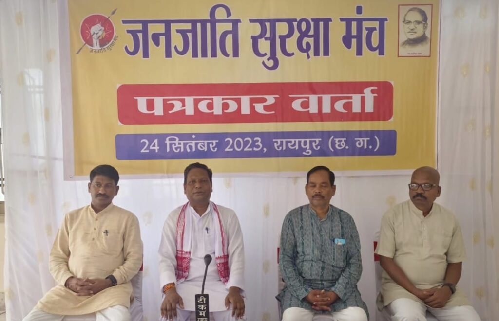 रायपुर ( छत्तीसगढ़)। प्रदेश की राजधानी में स्थित श्री रामनाथ भीमसेन सभा भवन, समता कॉलोनी, रायपुर में जनजाति सुरक्षा मंच की केंद्रीय टोली की दो दिवसीय (23-24 सितम्बर 2023) बैठक सम्पन्न हुई। बैठक में हुई चर्चा व कार्यवाही के संबंध में विस्तृत जानकारी के लिए आज रविवार को प्रेसवार्ता आयोजित हुई जिसमें जनजाति सुरक्षा मंच के अखिल भारतीय सह संयोजक डॉ. राजकिशोर हंसदा ने प्रेस से चर्चा की।
