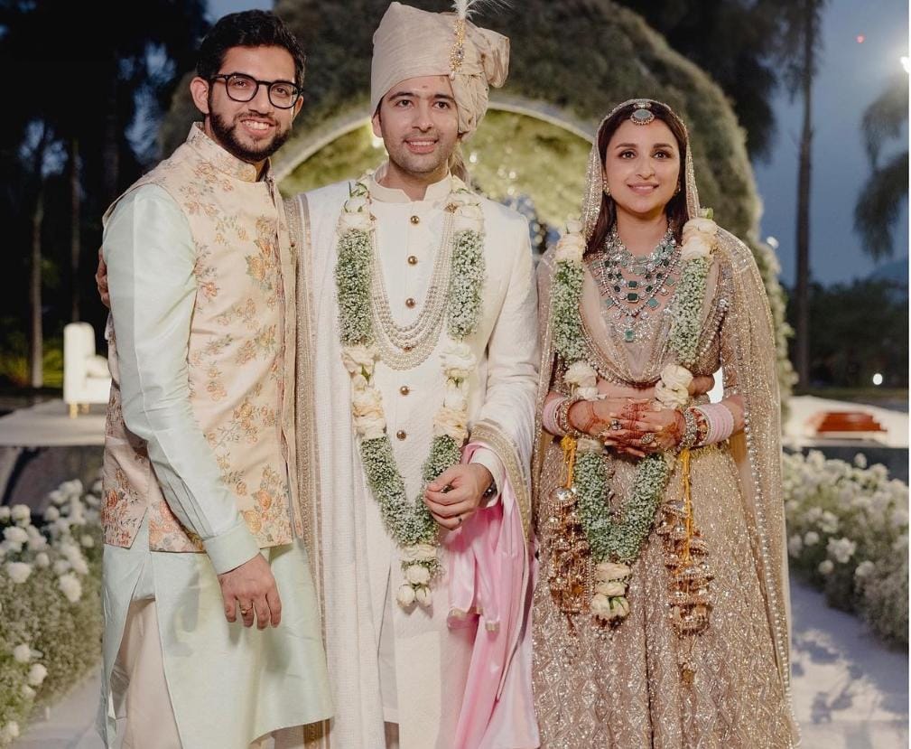 बॉलीवुड एक्ट्रेस परिणीति चोपड़ा और आम आदमी पार्टी नेता राघव चड्ढा रविवार 24 सितंबर को शादी के बंधन में बंध गए। उन्होंने उदयपुर के लीला पैलेस में एक शाही समारोह में शादी की। परिणीति और राघव की शादी में आदित्य ठाकरे भी शामिल हुए। शादी की तस्वीरें आदित्य ठाकरे ने शेयर की हैं।