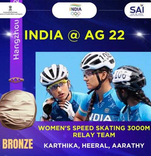 हांगझू, 2 अक्टूबर । एशियाई खेलों में सोमवार को भारतीय महिला और पुरूष टीम 3000 मीटर स्पीड स्केटिंग रिले रेस में भारत के लिए दो कांस्य पदक जीते।