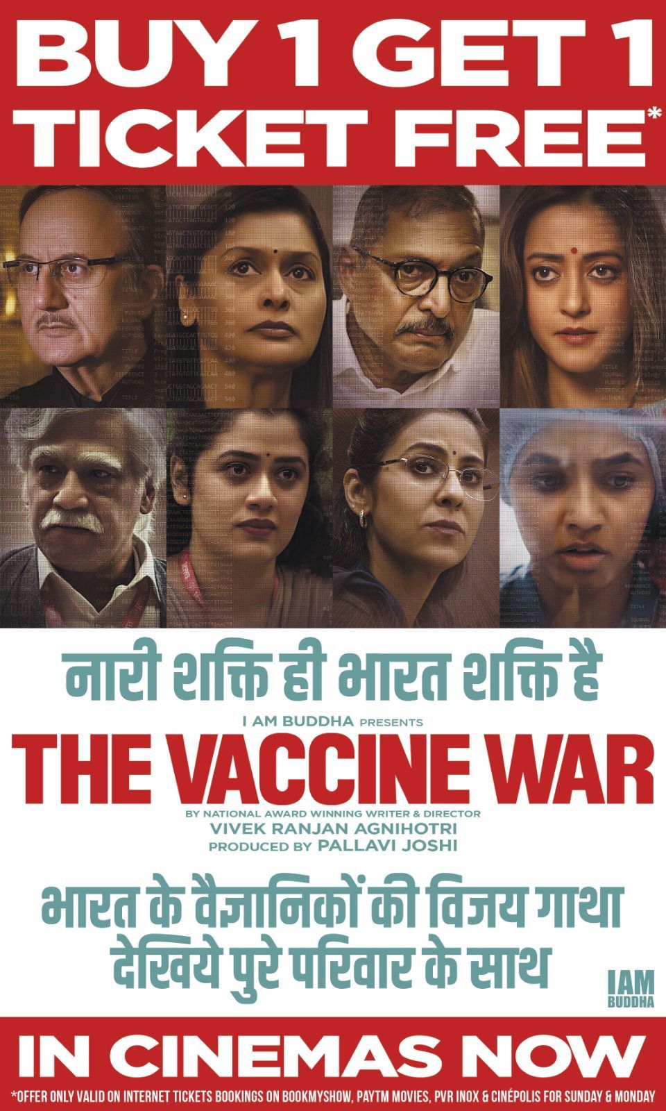 चूंकि, फिल्म भारत, भारतीय वैज्ञानिकों और महिलाओं की भावना का जश्न मनाती है और देश को सुरक्षित बनाने के लिए टीके विकसित करने में उनके प्रयासों पर भी प्रकाश डालती है, इसलिए निर्माताओं ने टिकटों पर ‘बाय वन-गेट वन’ का ऑफर शुरू किया है। राष्ट्रीय पुरस्कार विजेता फिल्म के निर्देशक विवेक रंजन अग्निहोत्री ने कहा, “ऐसा कोई नहीं है, जिसके शरीर में यह टीका नहीं है।” हम बहुत आसानी से भूल जाते हैं, लेकिन यह फिल्म प्रयासों की एक बड़ी याद दिलाती है। वैज्ञानिकों के त्याग, संघर्ष और सफलता की वजह से हम आज जीवित हैं। यह फिल्म भारत का उत्सव है, हमारे वैज्ञानिकों का उत्सव है और महान भारतीय भावना का उत्सव है। कृपया अपने परिवार के साथ ‘द वैक्सीन वॉर’ देखें और अपने बच्चों को भी दिखाएं।”