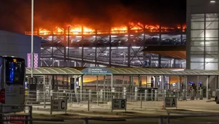 लंदन, 11 अक्टूबर। लंदन के ल्यूटन हवाई अड्डे पर एक बहुमंजिला कार पार्किंग की सबसे ऊपरी मंजिल पर आग लग गई। इस कारण सभी उड़ानें कैंसिल कर दी गईं। सोशल मीडिया पर प्रत्यक्षदर्शियों ने इसके वीडियो और फोटो साझा किए हैं। इनमें ऊपरी मंजिल पर आग की ऊंची लपटें दिखाई दे रही हैं। पार्किंग का करीब 80 प्रतिशत क्षेत्र आग में घिरा हुआ है। यह जानकारी मीडिया रिपोर्ट्स में दी गई है।